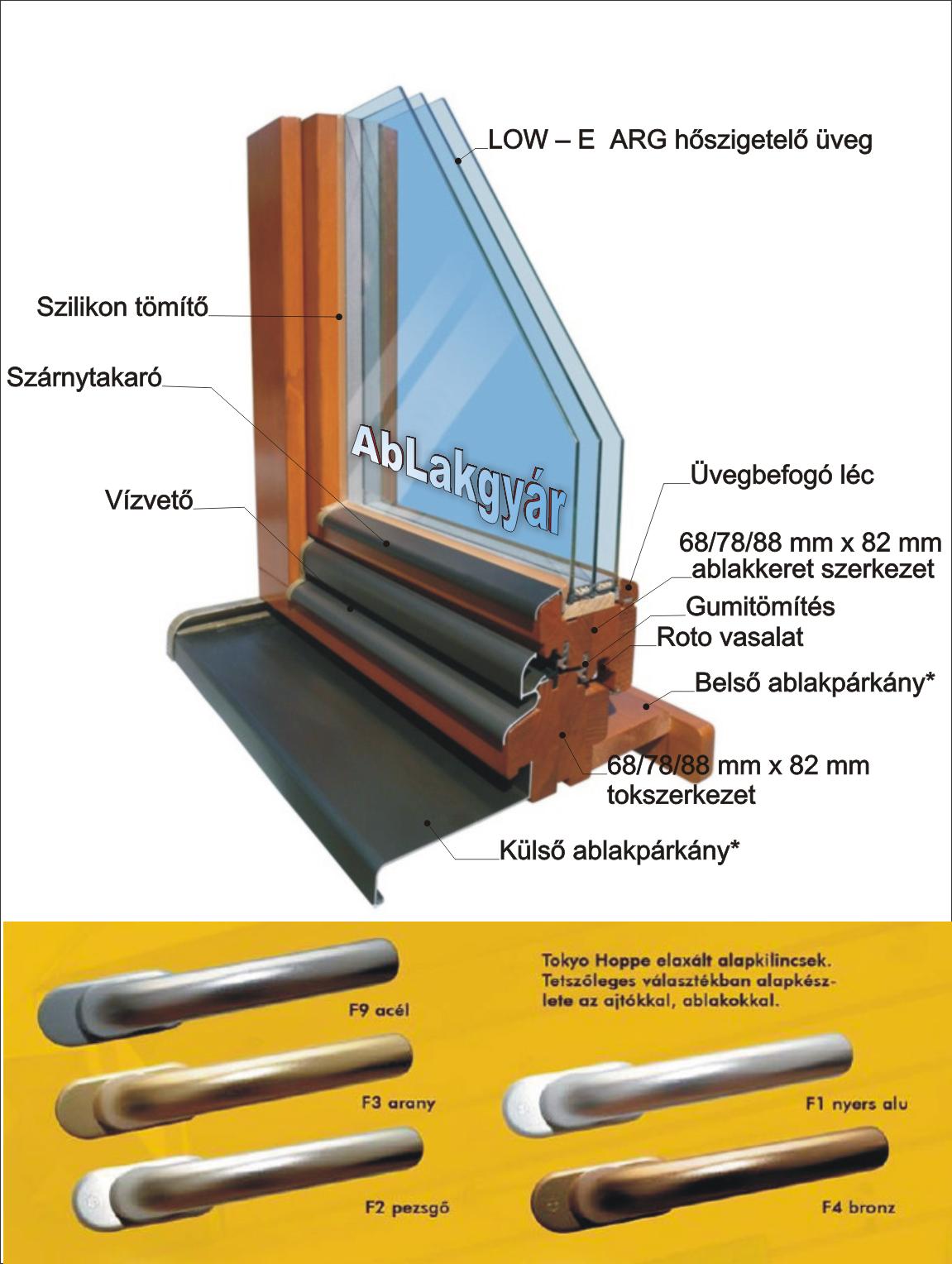 78 mm x 82 mm tokszerkezet hőhídmentes eloxált alumínium vízvetővel. (szín:alu. elox,bronz,arany) (Opció színterezés) 78 mm x 82 mm ablakkeret szerkezet 4 - 12 - 4 - 12 - 4 LOW - E ARG 0,7 kW / m2 hőszigetelő üveggel ,